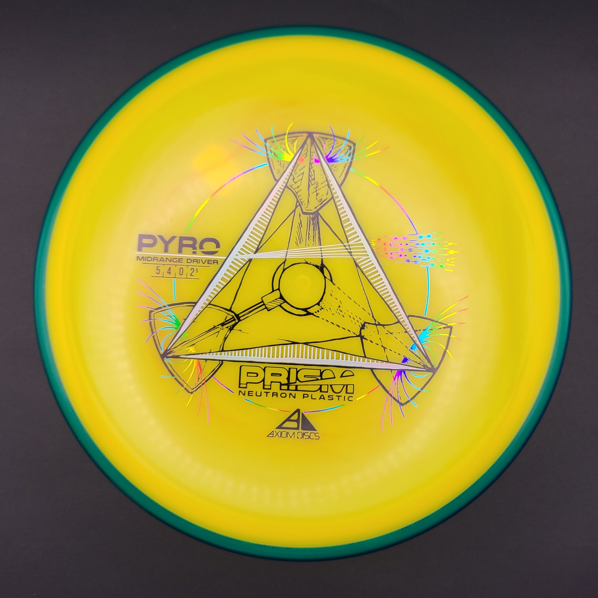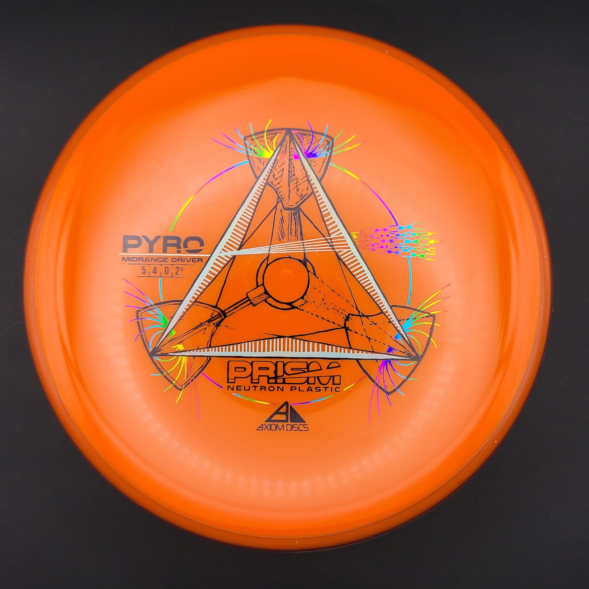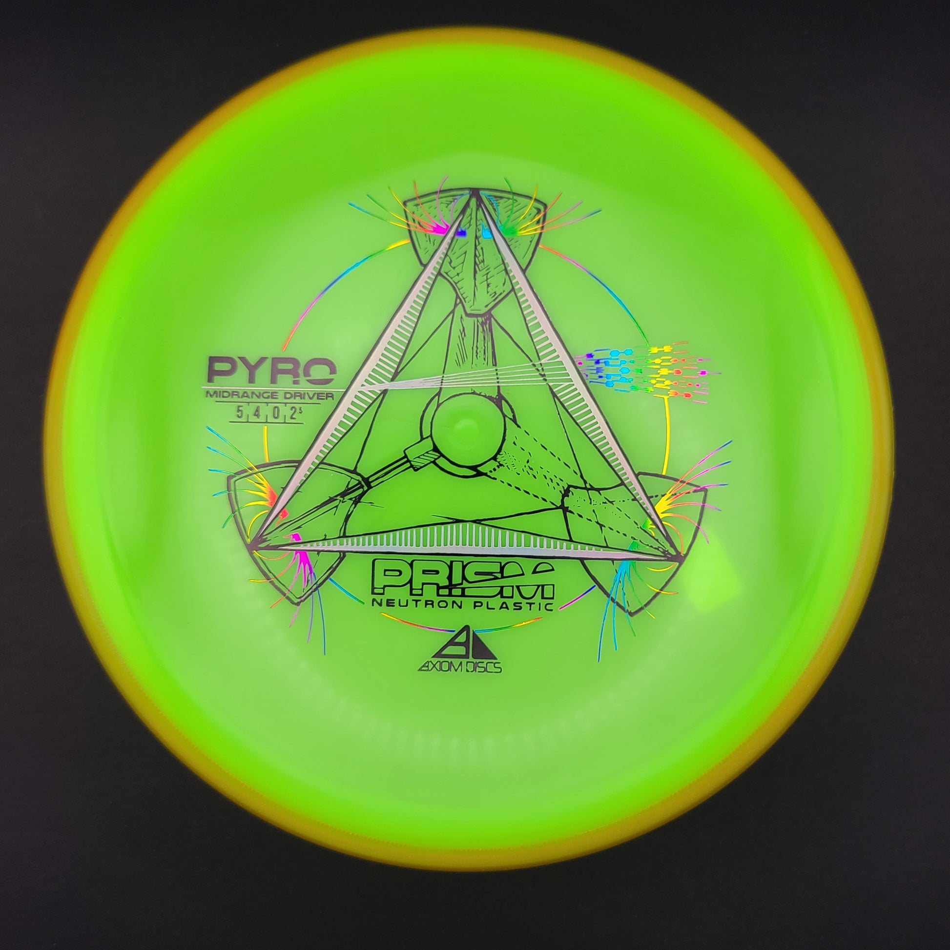 Le Prism Pyro a été conçu comme le premier midrange overstable d'Axiom avec plus de glide que le MVP Deflector et une finition stable et imposante. Le Pyro a suffisamment de stabilité pour des vols constants par vent fort et des lancers puissants sans perdre sa ligne.