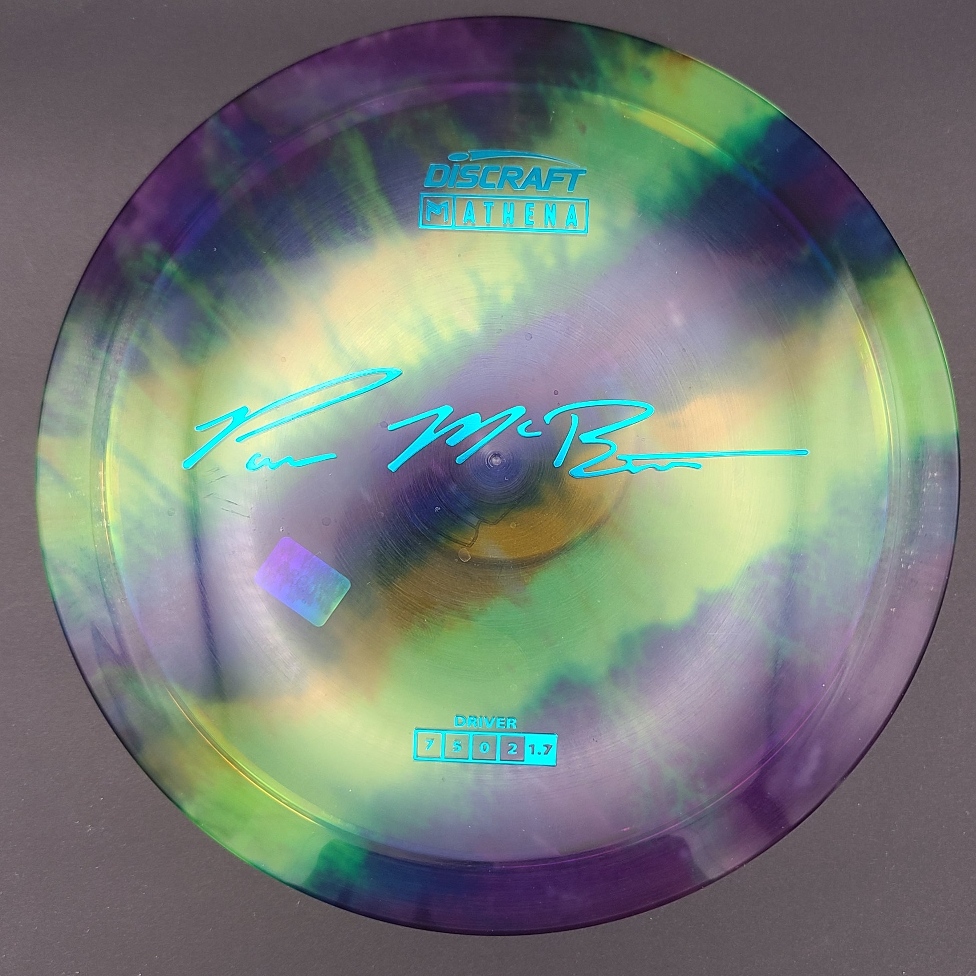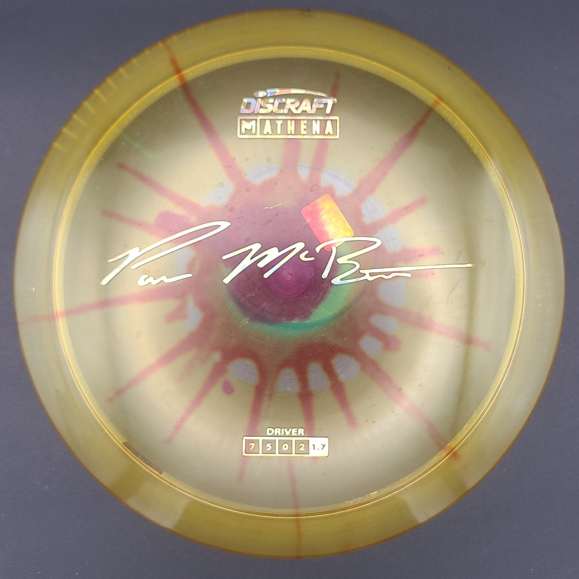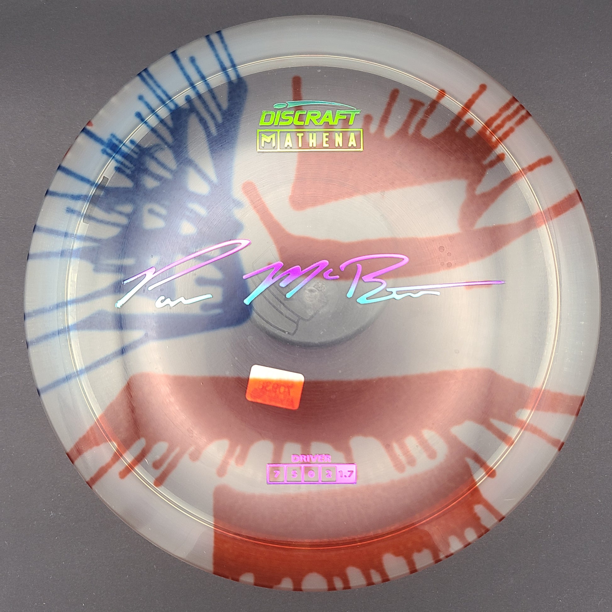 The Athena is the sixth disc in the Paul McBeth lineup. This 7 speed driver is for control shots with a dependable fade.
