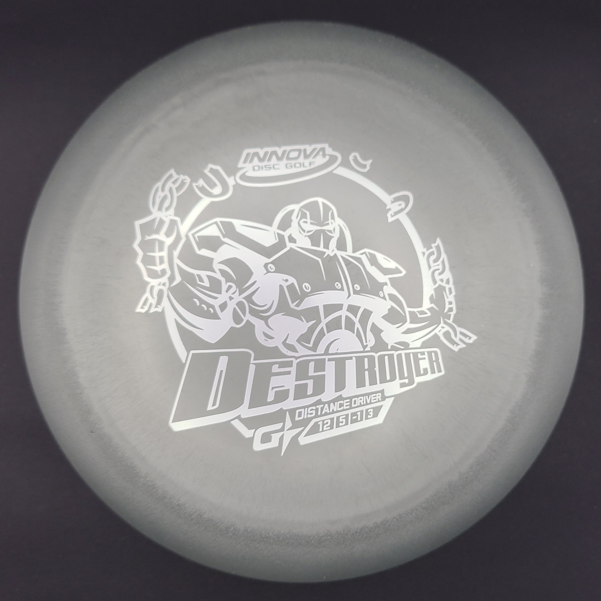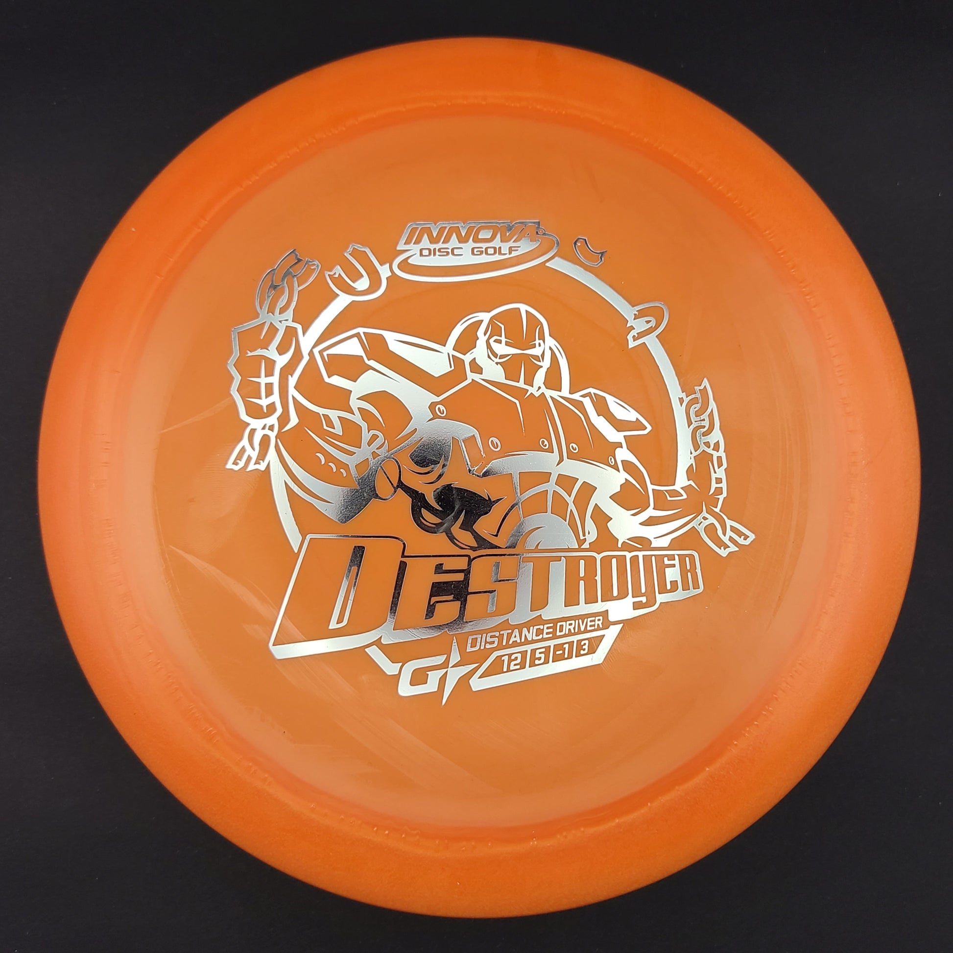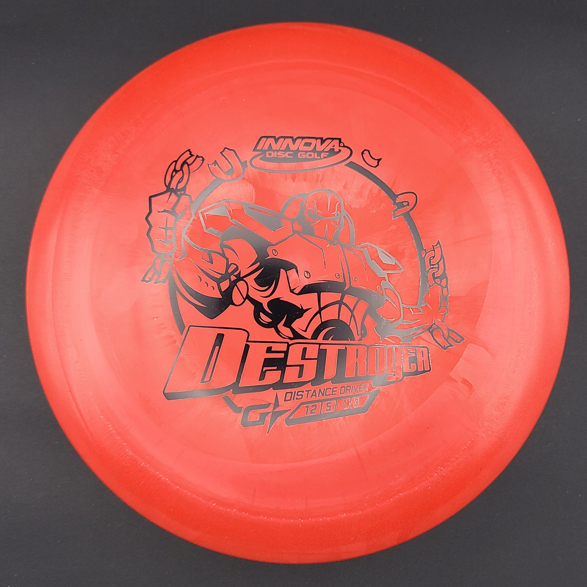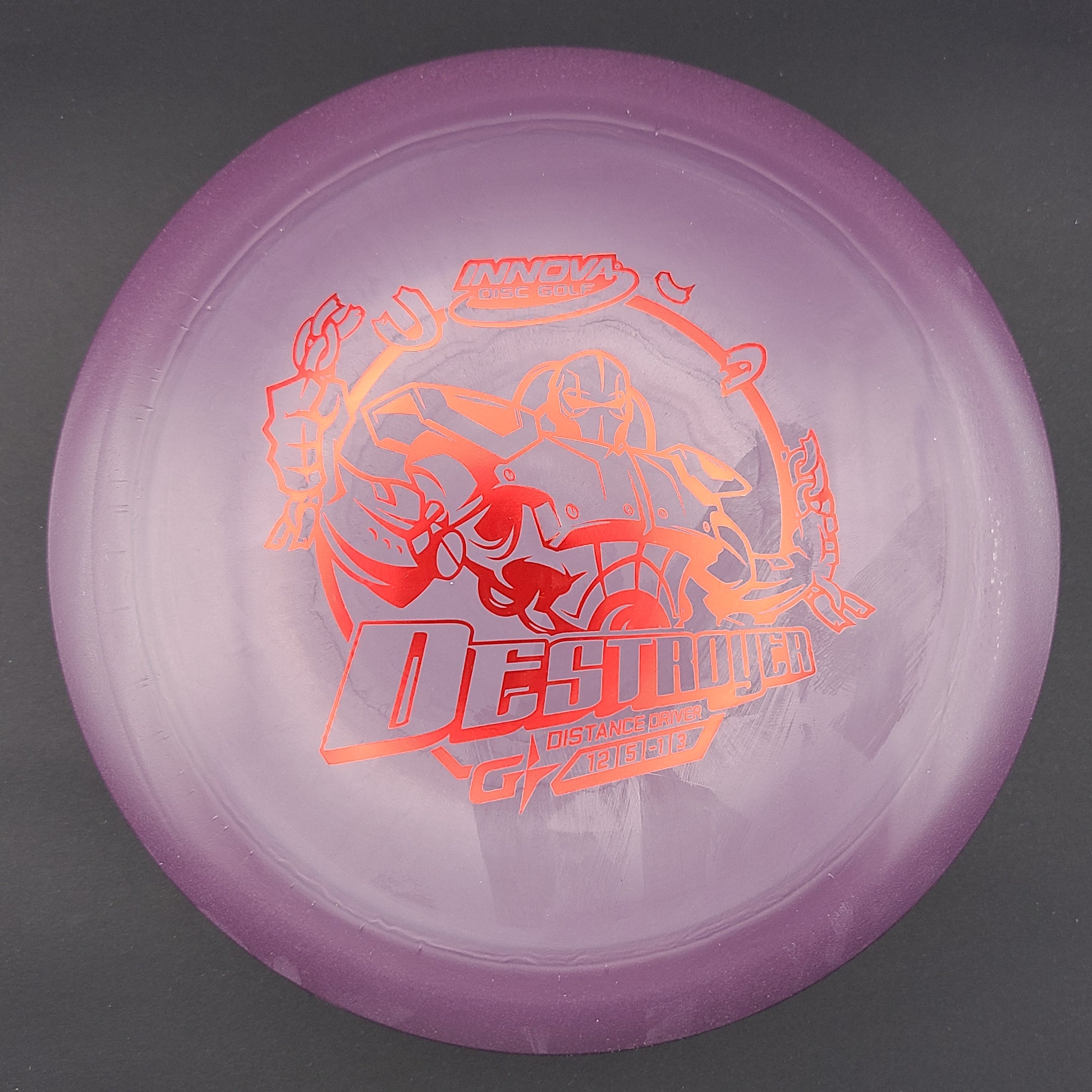 The Destroyer is a very fast stable long distance driver. This disc is much like a faster Wraith, but with a little more high and low speed stability. Great disc for sidearm throwers and those with lots of power. Can handle headwinds and throws with off axis torque.