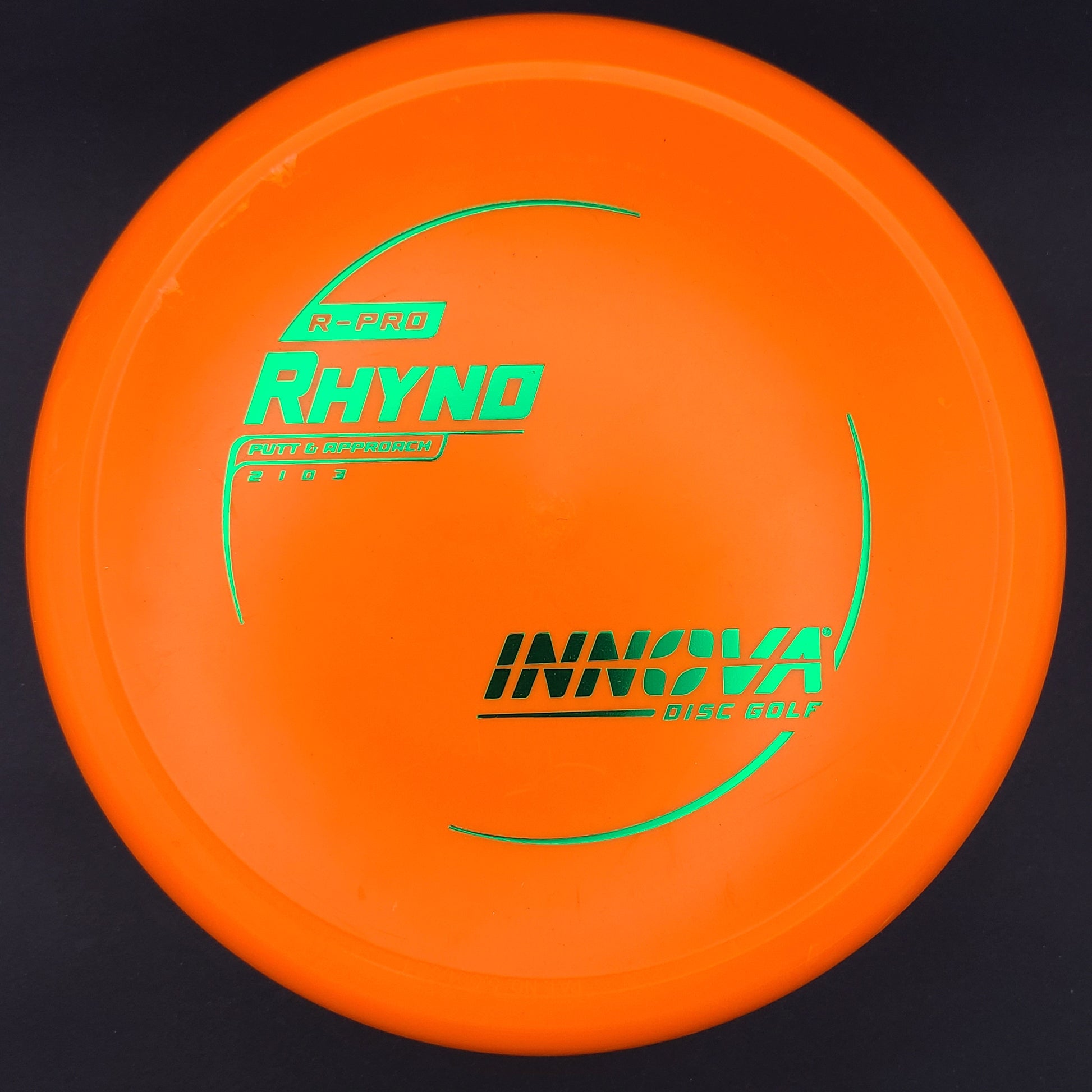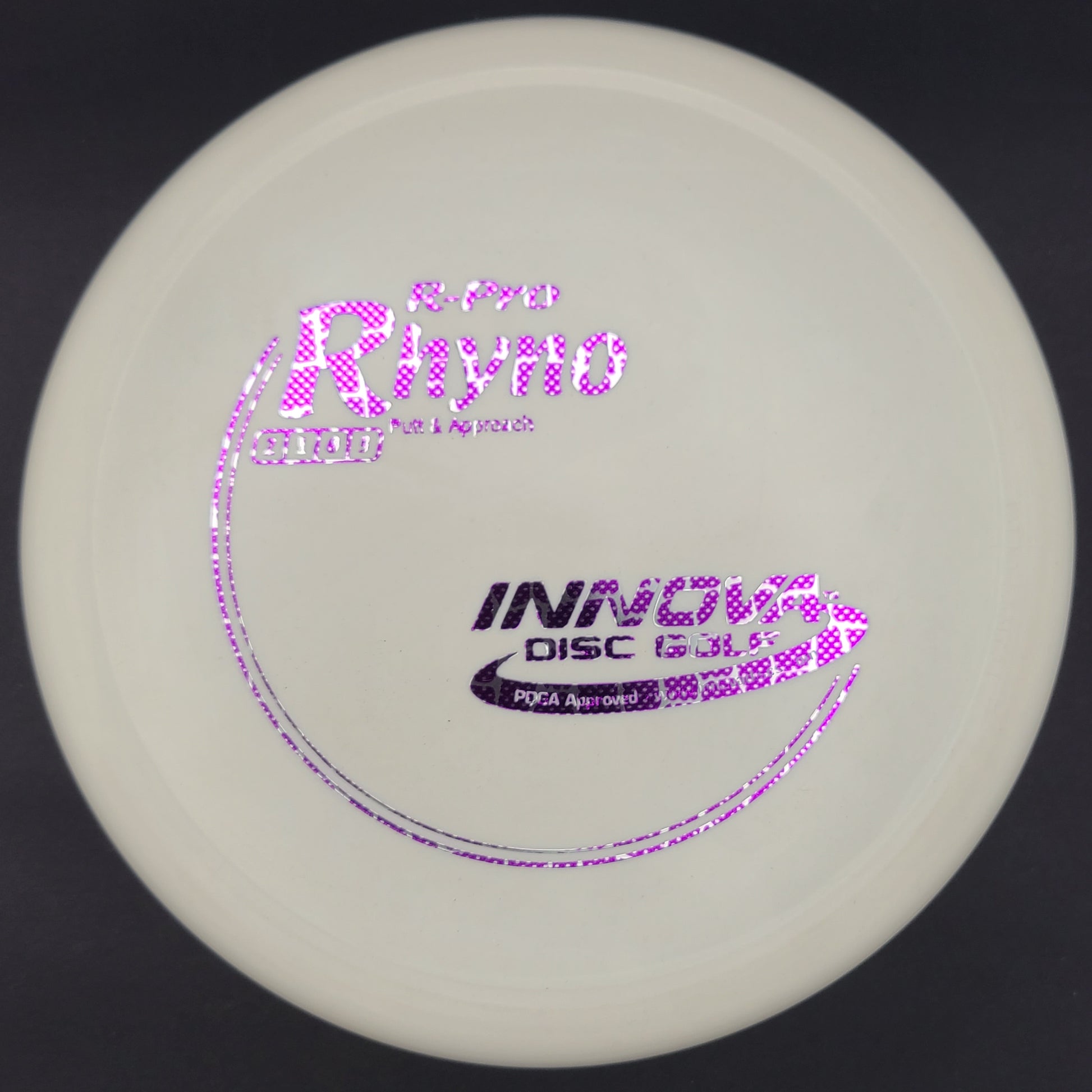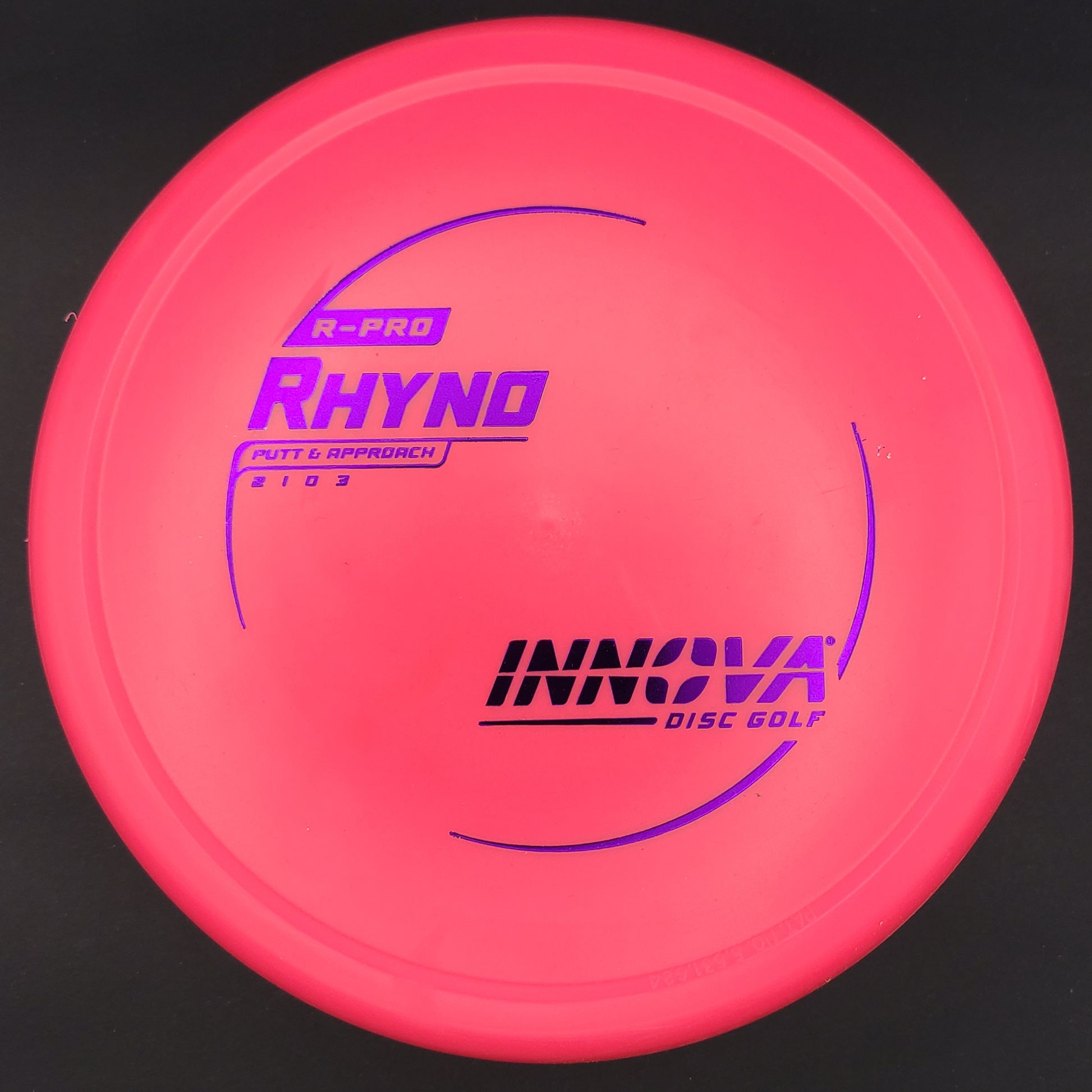 The Rhyno is an overstable putt and approach disc that can handle headwinds. Great for players with lots of throwing power as the Rhyno stops on a dime and stays close to the basket. It is a must have disc for short to medium up shots and putting into the wind. The R-Pro model is also called a "Soft" Rhyno and is made to be super soft and flexible in an extra grippy plastic that grabs the chains.