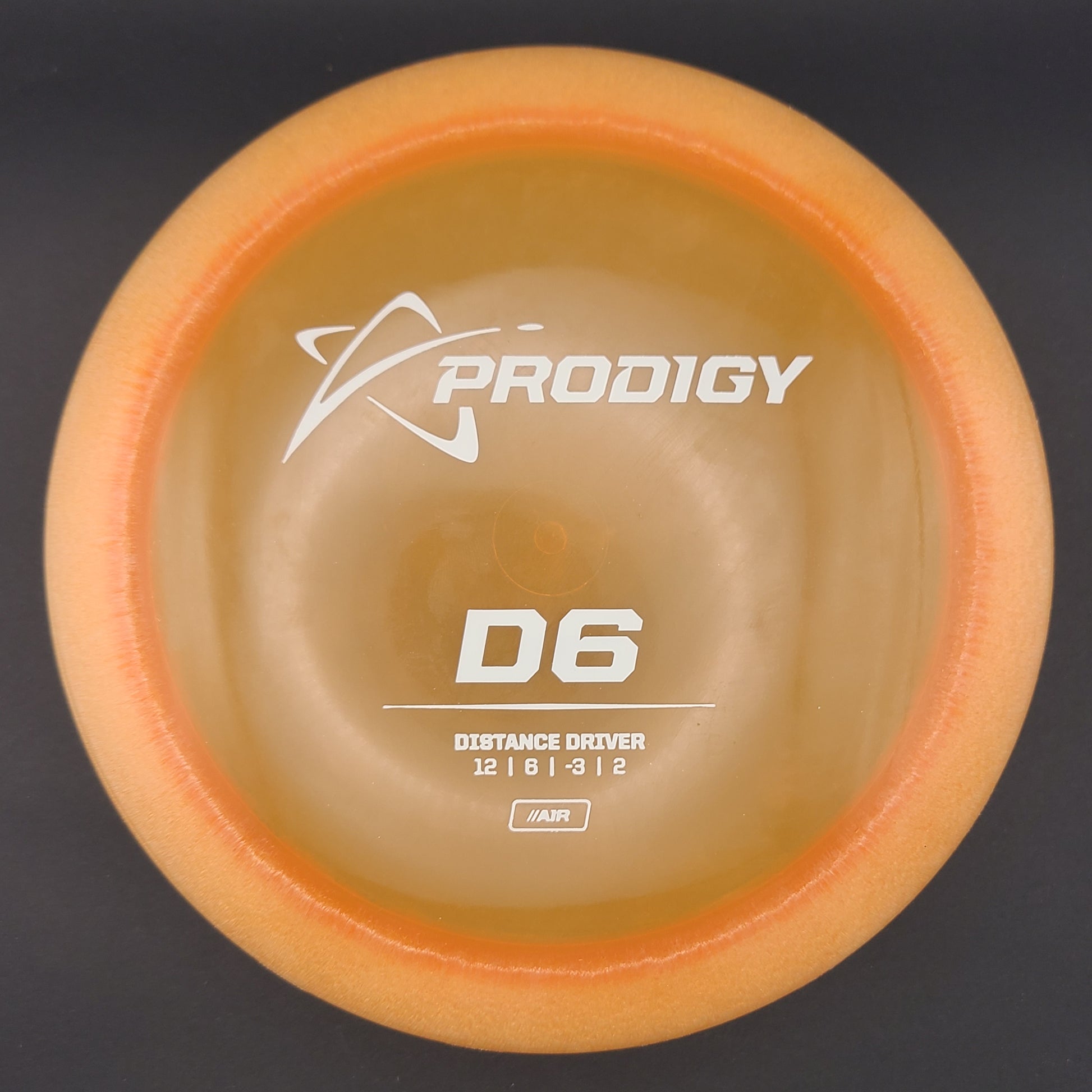 Adding to our flagship series of distance drivers, the Prodigy Disc D6 is a very fast, under stable driver. It is designed for all players and flies extremely far. The D6 will flip up when thrown hard, turn towards the right (for right-handed throwers) and then go into an extremely long glide, with a gentle draw finish to the left. The D6 is also a great disc for long controlled rollers.