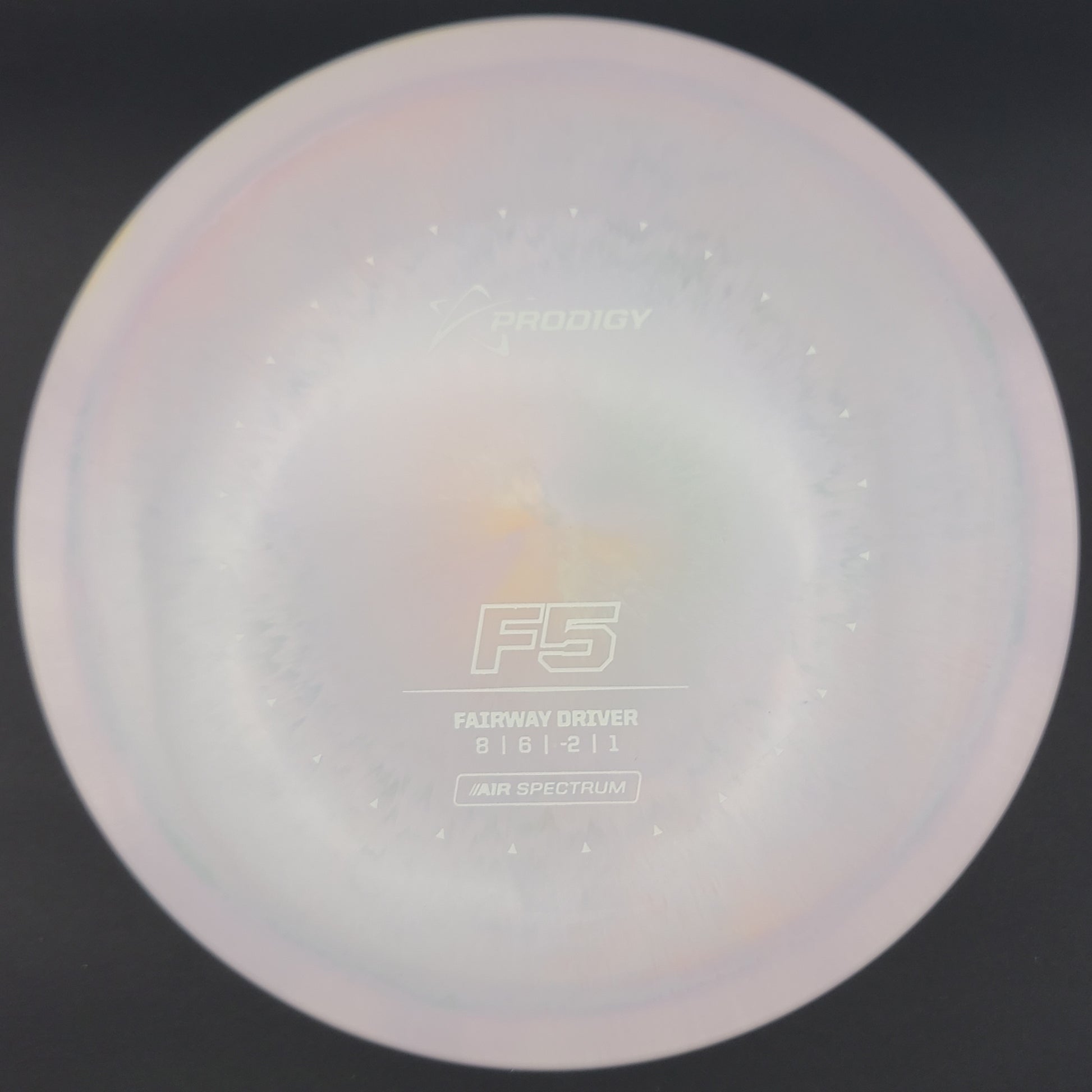 F5 is a high speed , stable to under stable fairway driver. It is designed for all skill levels and flies extremely far and incredibly straight. The F5 will turn up slightly when thrown hard it will go into a long glide before finishing gently to the stable side.