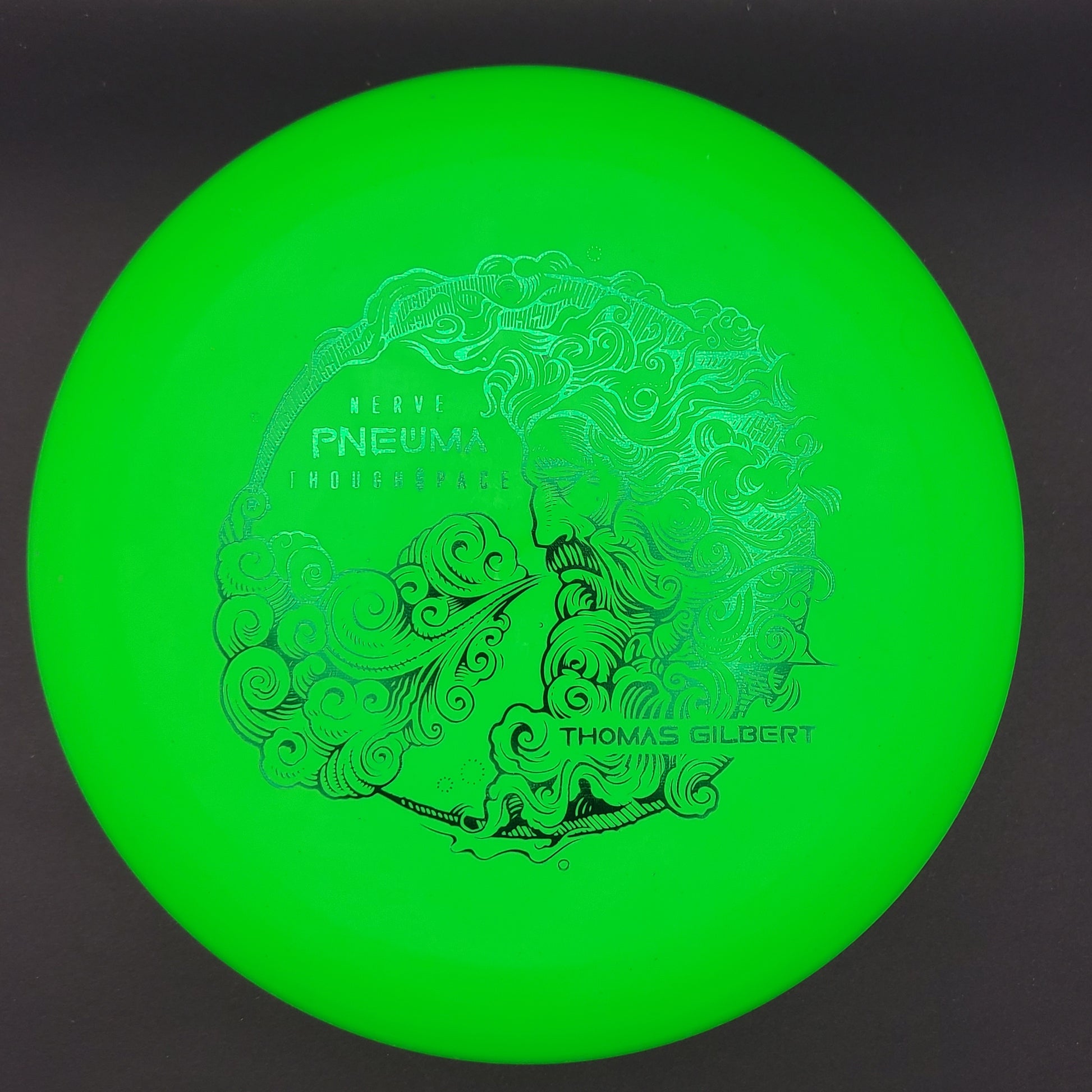 The Pneuma is our new beaded putter crafted through a collaborative effort between Thought Space Athletics and Thomas Gilbert. With flight numbers 2-3-0-0, the Pneuma boasts exceptional control and accuracy, making it the ideal choice for beginners and seasoned players. Its sleek design and comfortable grip ensure a smooth release, allowing for precise throws that effortlessly navigate the course. Prepare to elevate your game with the Pneuma!