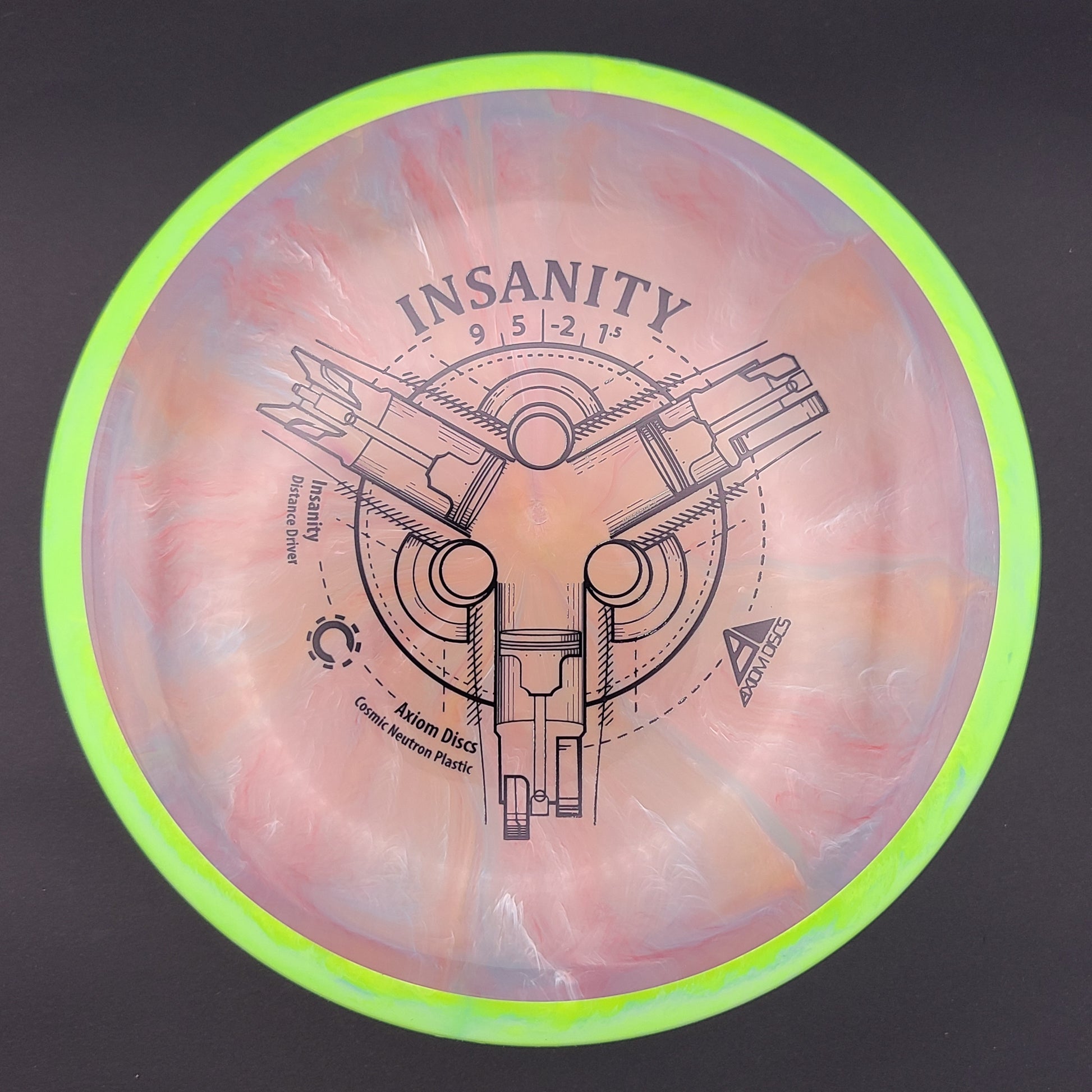 For average power throwers the Insanity will be remarkably straight, while high power throwers can carry out precise flip and turnover lines with ease. Whether you're looking for that sweet-spot worn disc flight, or you're looking to achieve bigger lines with less power, try the Insanity!