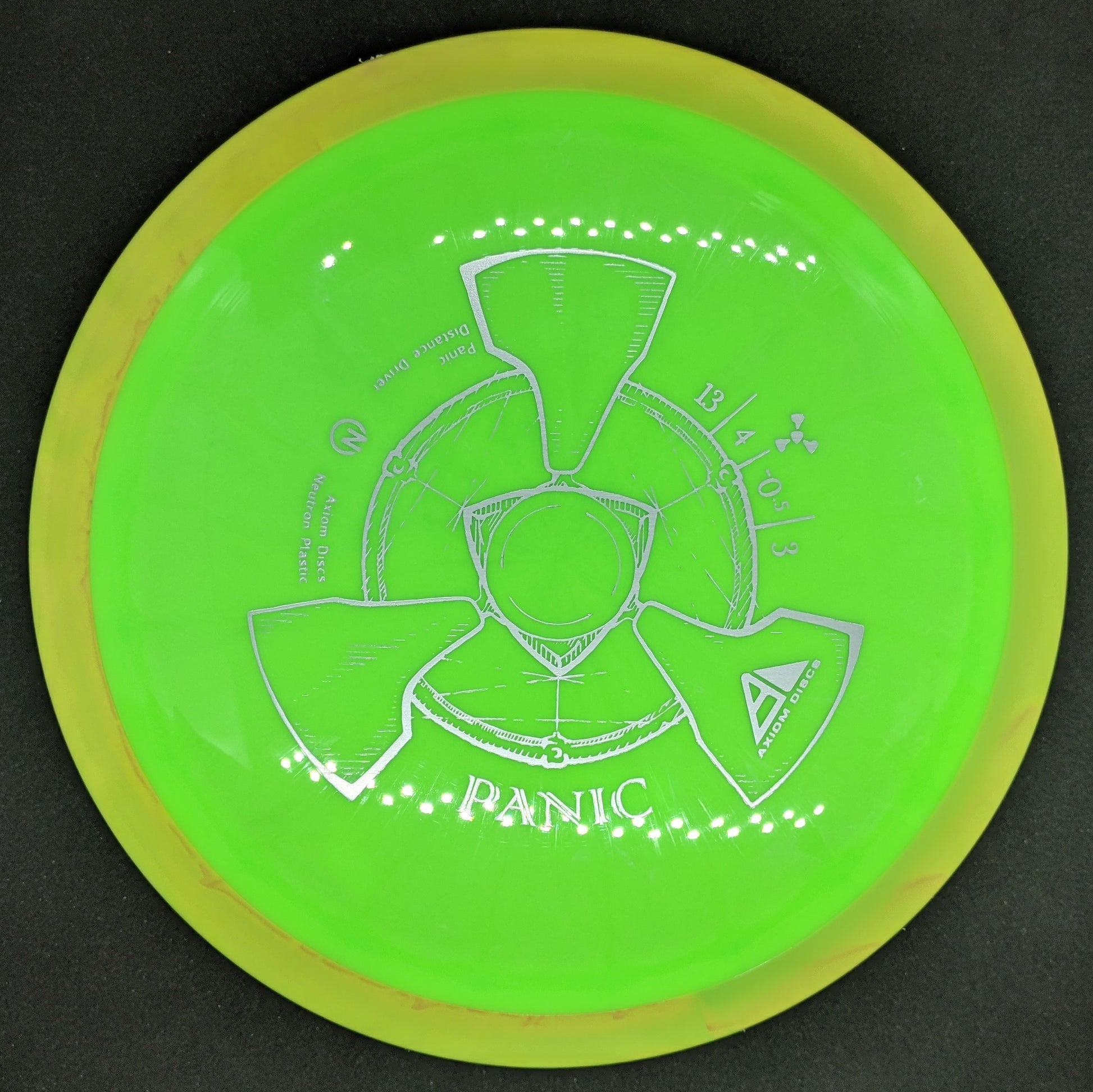 Le Panic est complètement ovverstable, avec beaucoup de puissance pour gérer les vents contraires et rapides forehands. Sa surstabilité maintient le Panic sur n'importe quel type de ligne hyzer et permet des tirs flexibles anyhyzer. Pour les lanceurs de grande puissance, le Panic sera un driver utilitaire, tandis que les lanceurs plus récents et moyens obtiendront un vol extrêmement surstable. The Panic est mieux décrit comme un MVP Nitro chevronné.