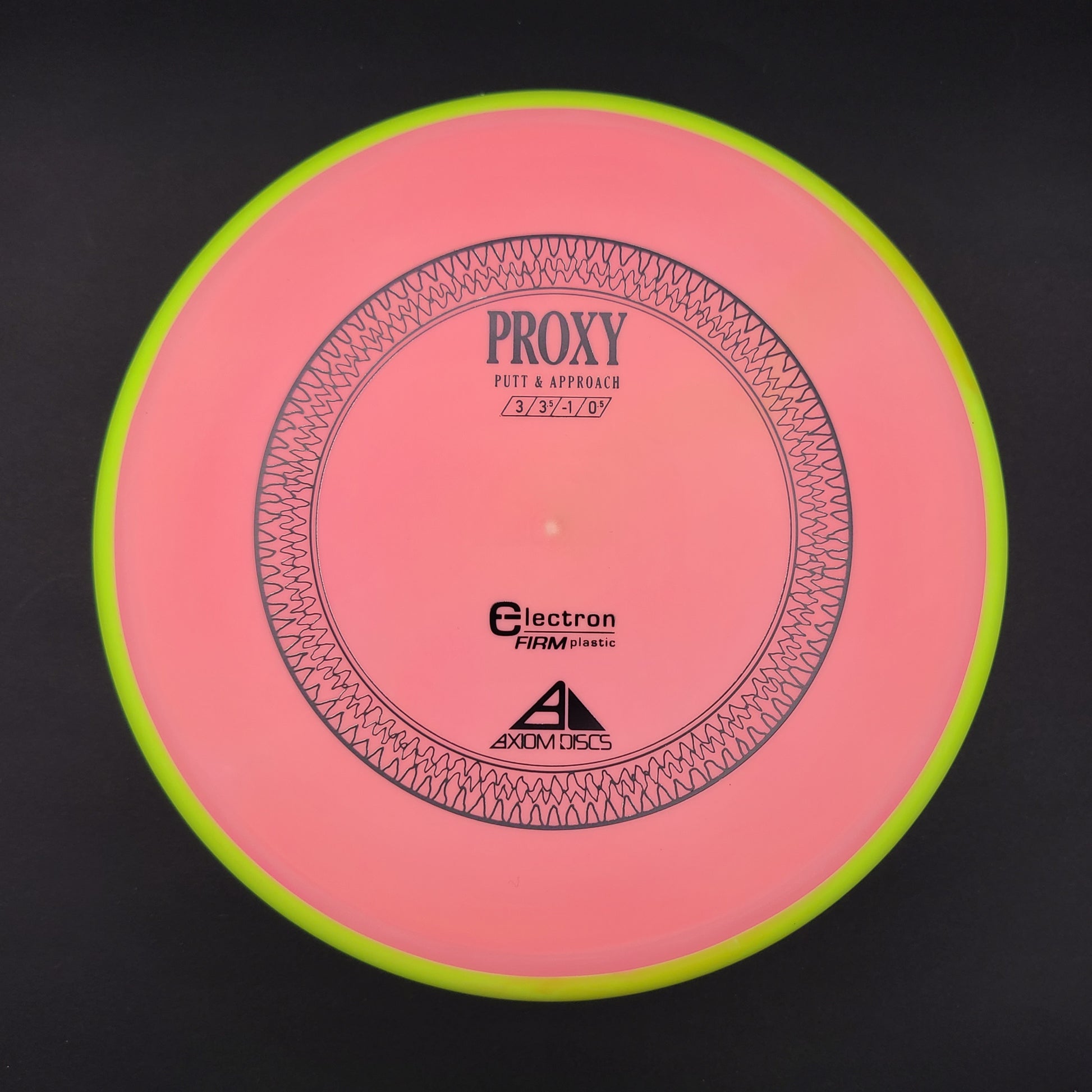 Le Proxy partage la base du moule Envy, offrant la même sensation de profil bas et une adhérence solide, avec une largeur d'aile courte et un large diamètre pour une glide supérieure. Le Proxy se distingue de l'Envy avec une finition remarquablement simple au fade. Un peu de potentiel de virage à grande vitesse permet aux lignes du Proxy d'être manipulées sur une large plage de puissance et aide les lanceurs moins puissants à réaliser des putter drives droites.