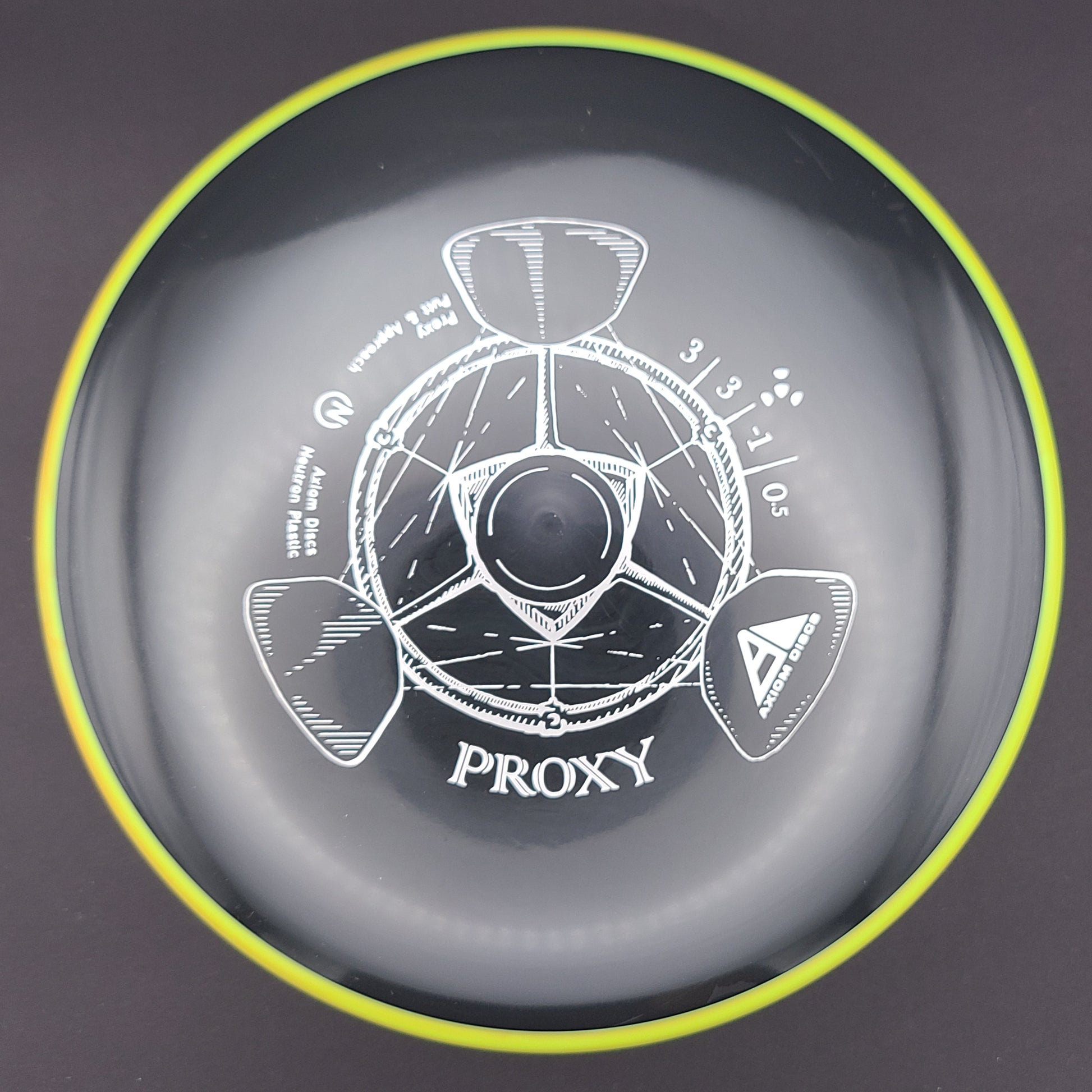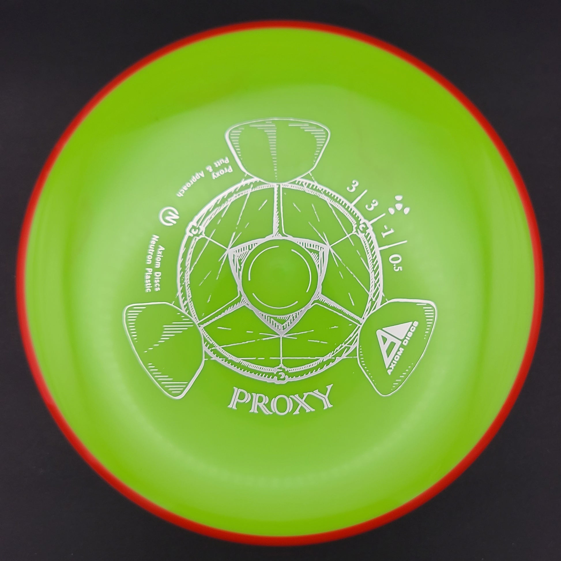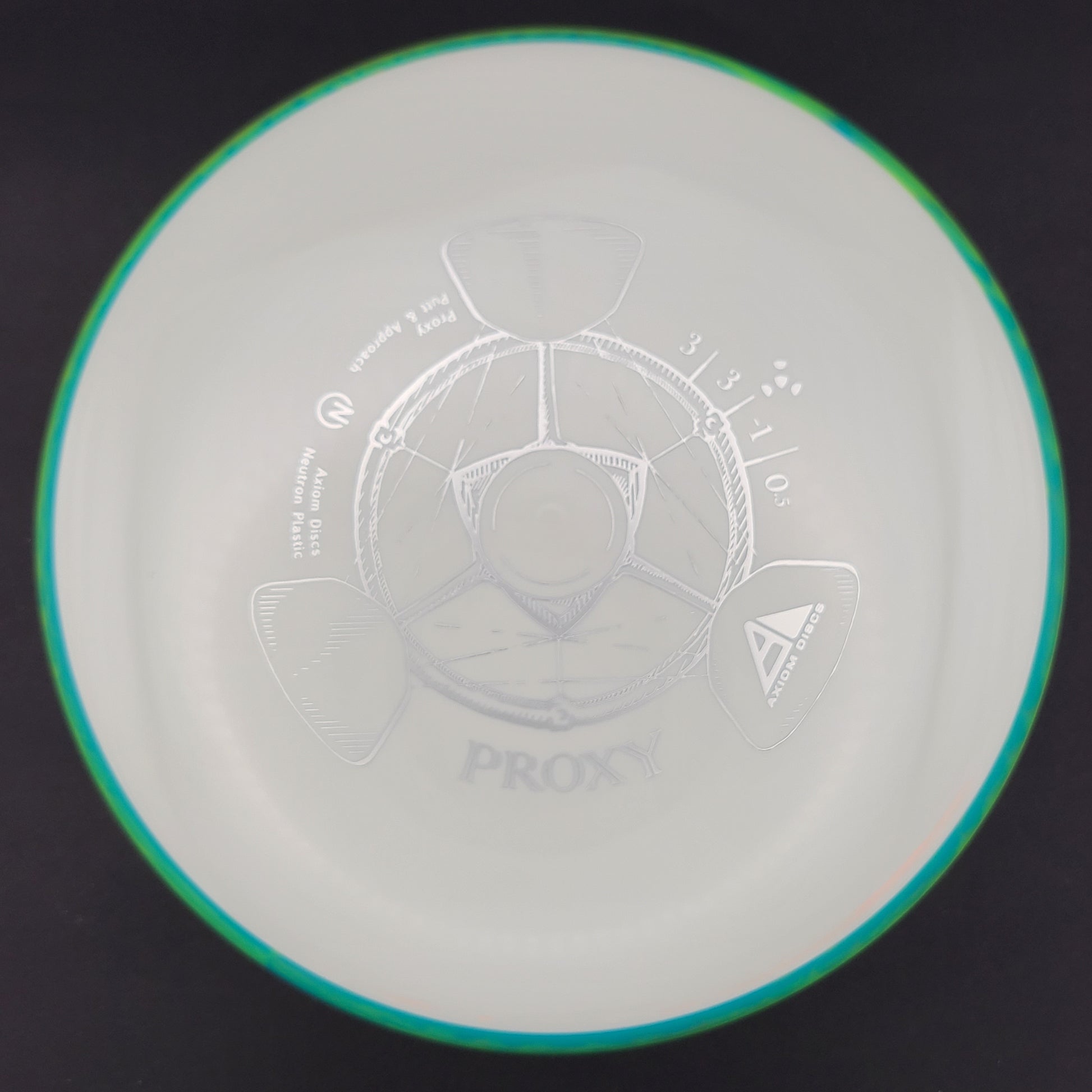Le Proxy partage la base du moule Envy, offrant la même sensation de profil bas et une adhérence solide, avec une largeur d'aile courte et un large diamètre pour une glide supérieure. Le Proxy se distingue de l'Envy avec une finition remarquablement simple au fade. Un peu de potentiel de virage à grande vitesse permet aux lignes du Proxy d'être manipulées sur une large plage de puissance et aide les lanceurs moins puissants à réaliser des putter drives droites.