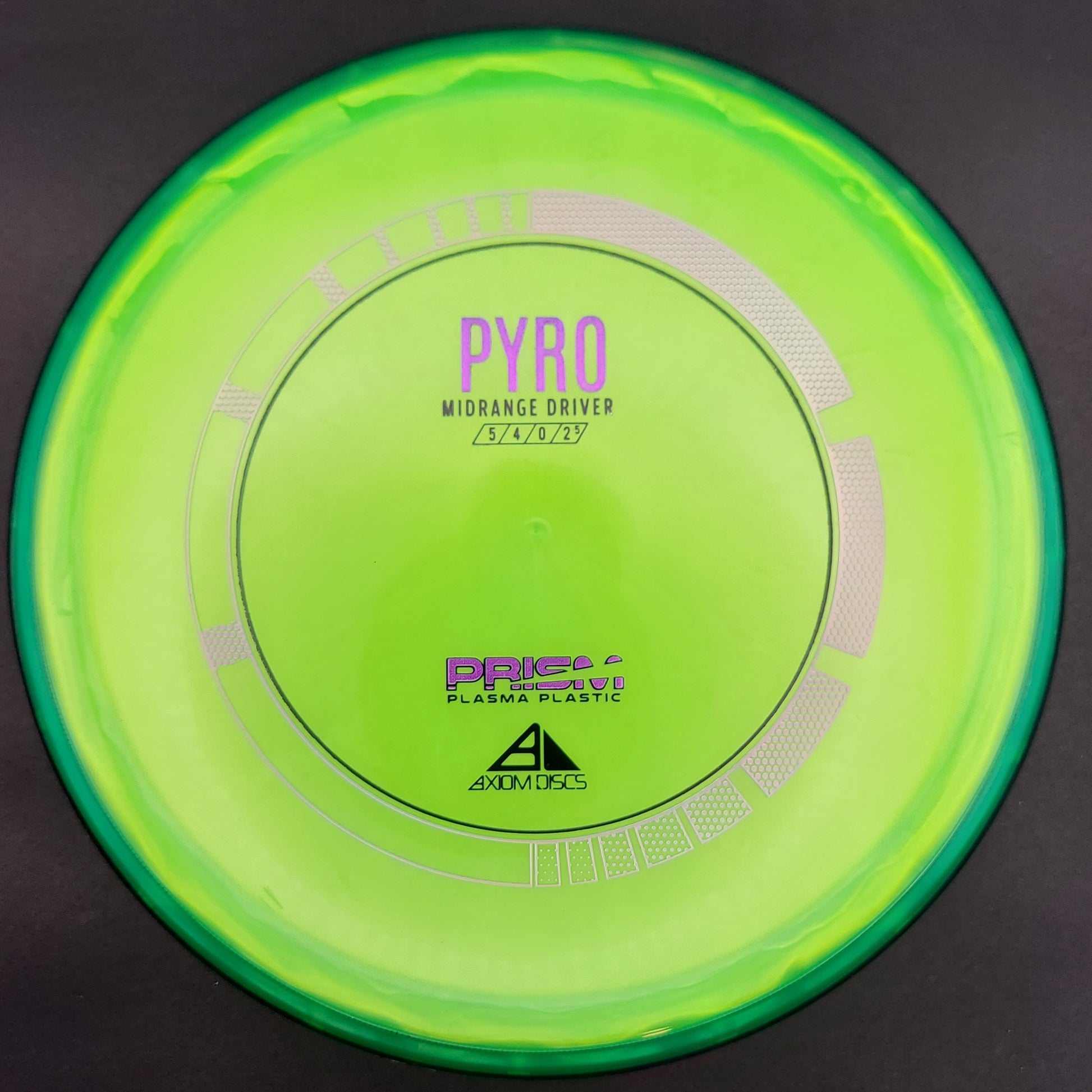 The Prism Pyro was designed as Axiom’s first overstable Midrange with more glide than the MVP Deflector and a commanding stable finish. The Pyro has enough stability for consistent flights in strong winds and powerful throws without losing its line and turning off target.