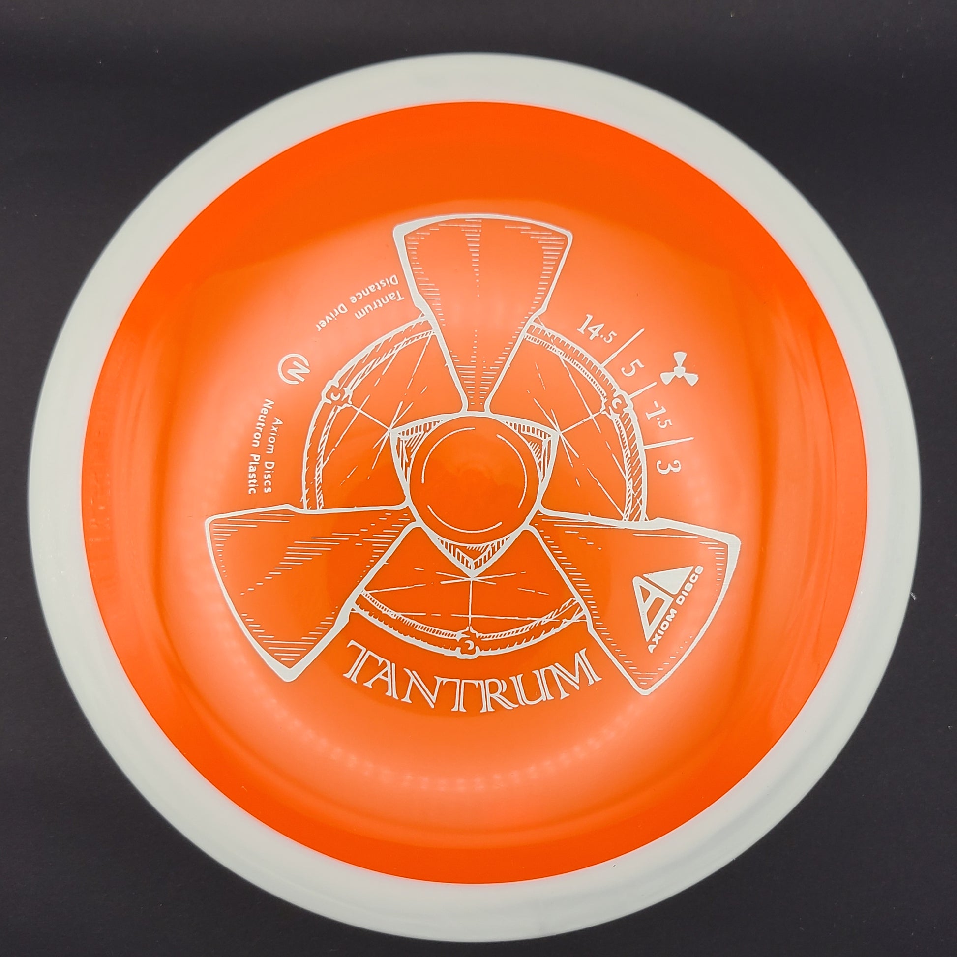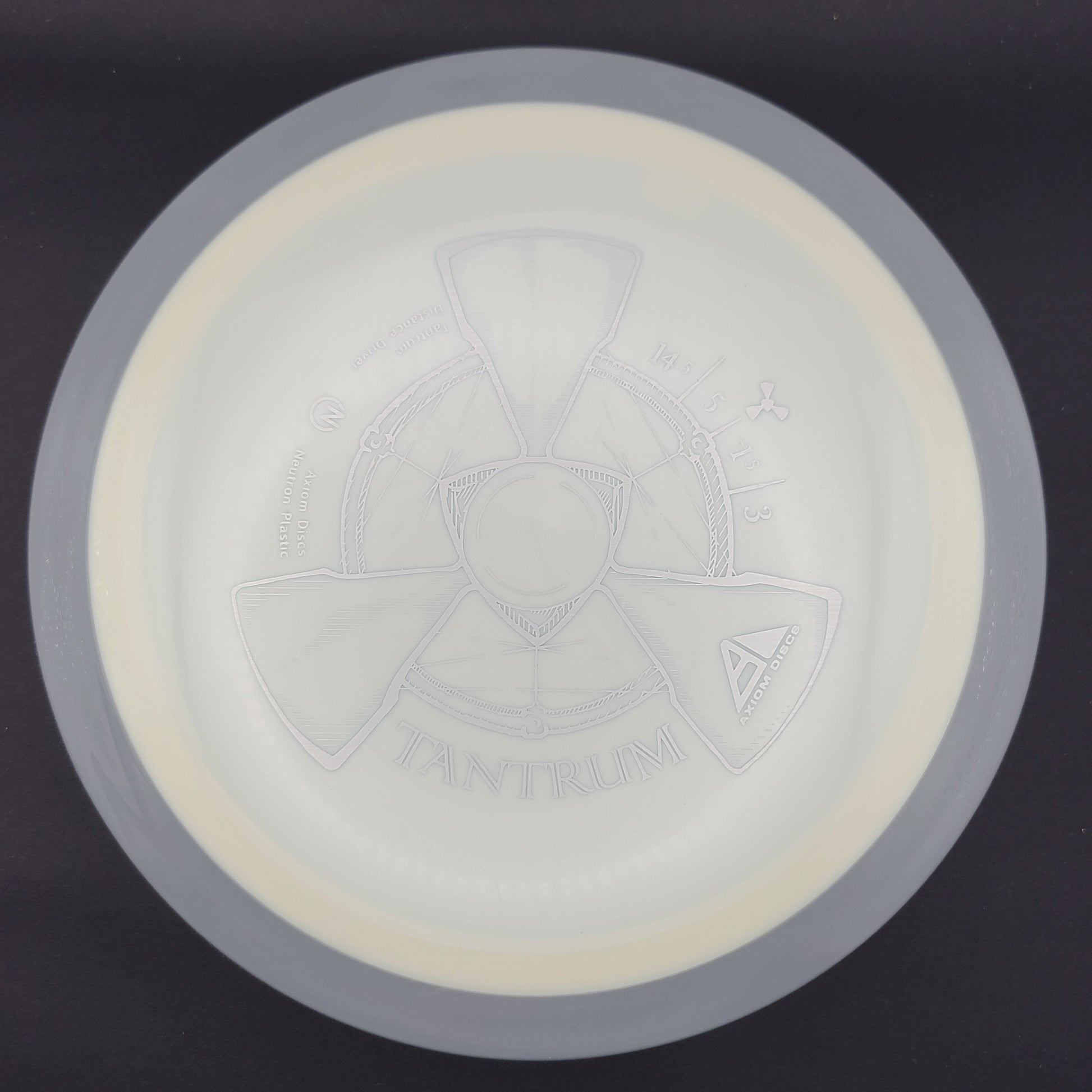 The Tantrum is a stable-understable distance driver. The Tantrum’s sweeping lines and hyzerflip potential allow power throwers to shape all kinds of shots. The Tantrum is best described as a beat-in Teleport, with huge glide and distance potential. The most critical factor in a Tantrum’s flight is the power put behind it. At full expert power the Tantrum will have significant turn with a reliable fade. At average thrower power the Tantrum will likely perform straight-stable with a sharp fade. With lower power or beginner technique, the Tantrum will exhibit a very overstable flight without max distance gains, fading early in flight. High-speed drivers like the Tantrum are recommended for high power throwers.