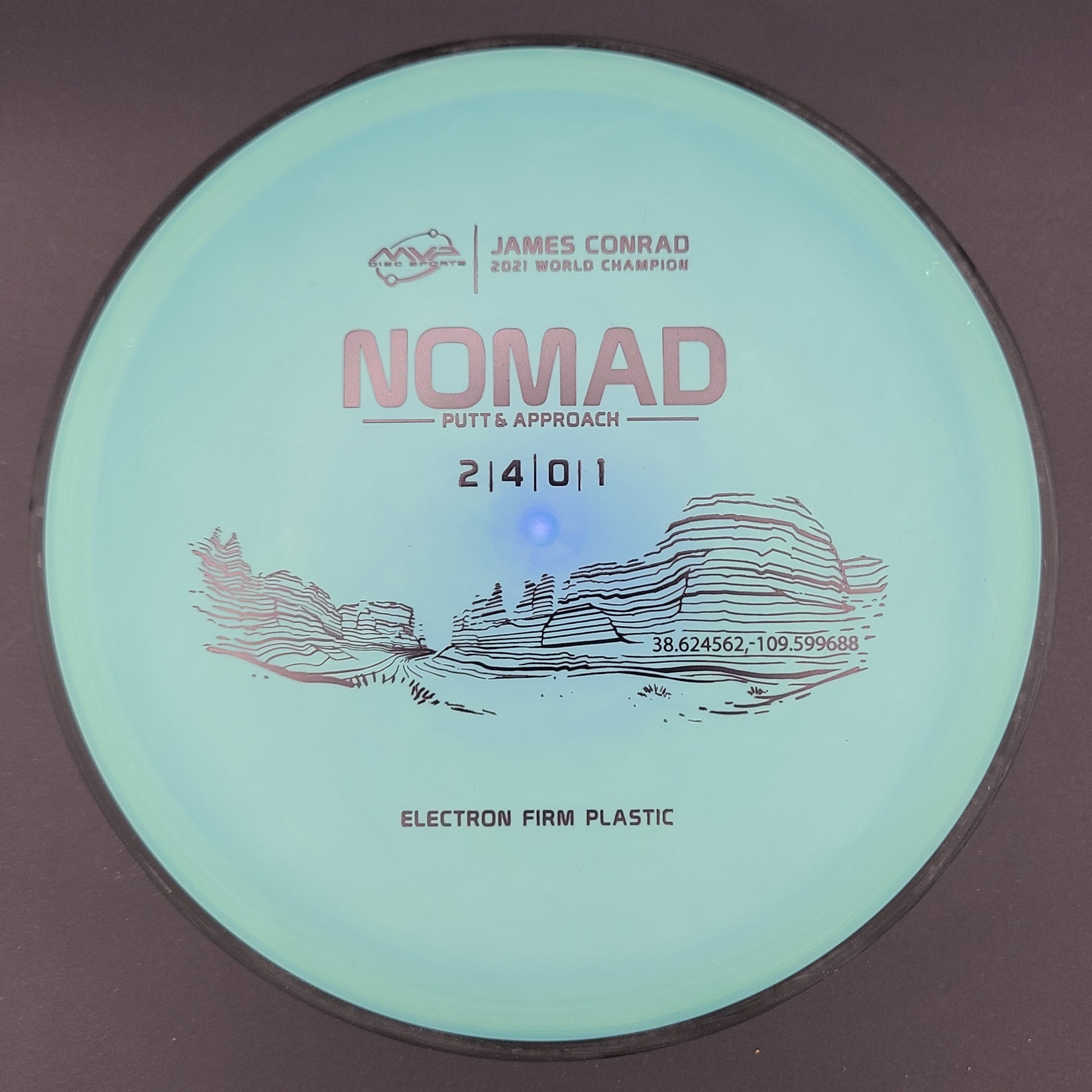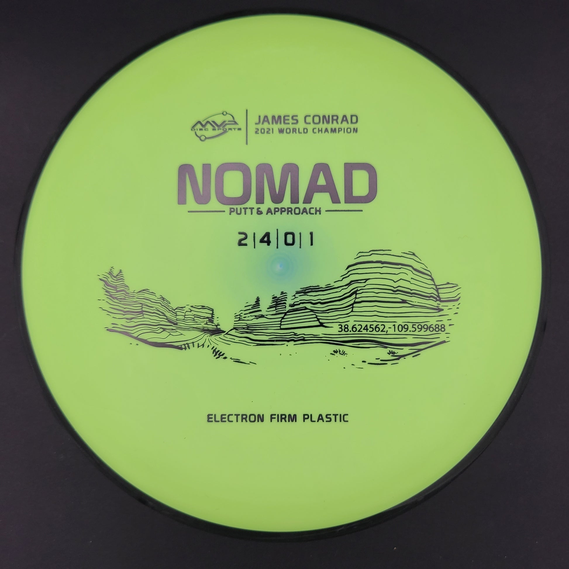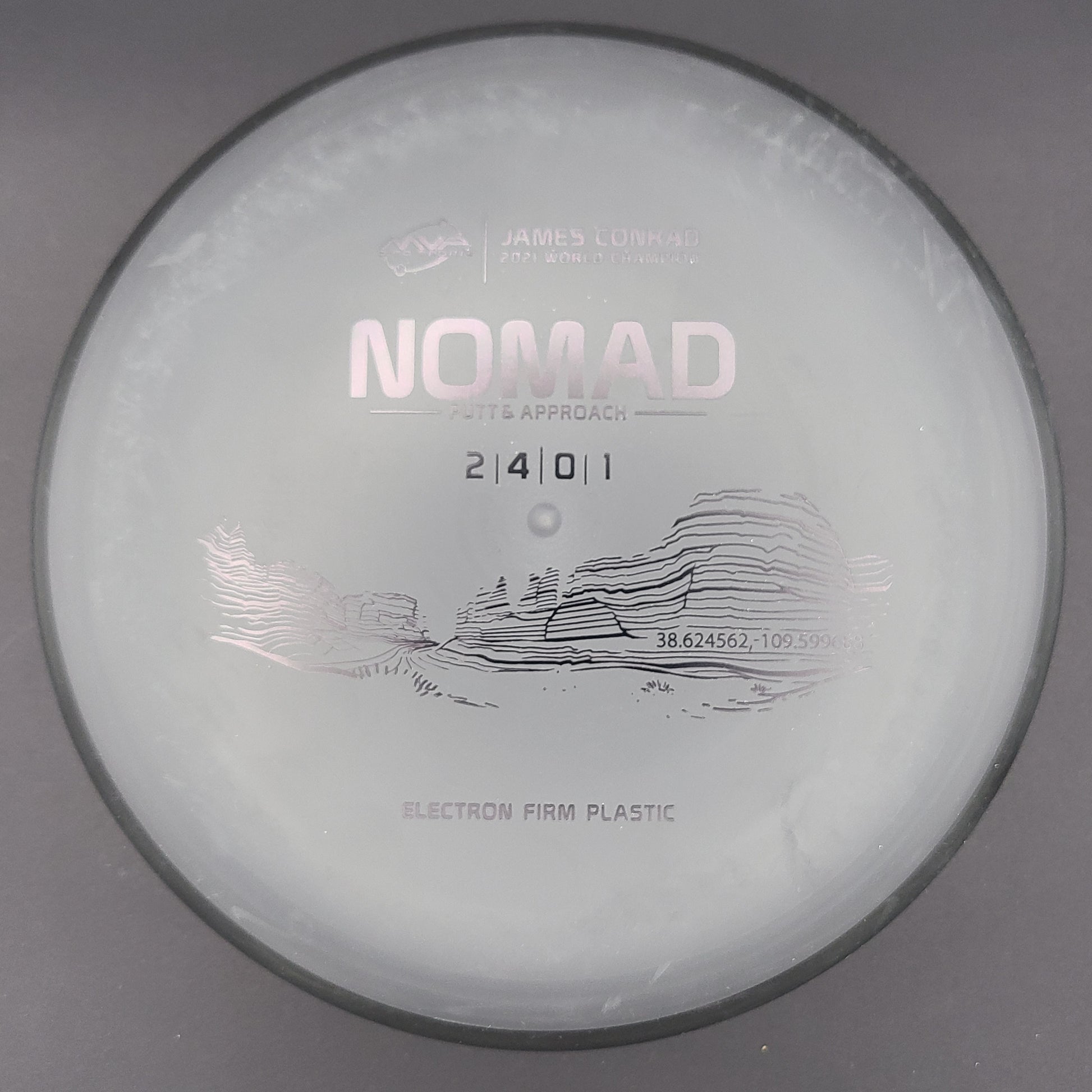 From the depth and shoulder height, all the way down to the size of the small bead — the Nomad is James Conrad’s vision of an ideal putter. Expect a neutral flight inside the Circle, with some fade kicking in at Circle 2 — making the Nomad great at holding anhyzer or hyzer angles when need be. Off the tee, the Nomad’s straight-stable flight will let throwers of all power levels experience confident, straight lines with just enough glide to stick under the basket — not blow past it.