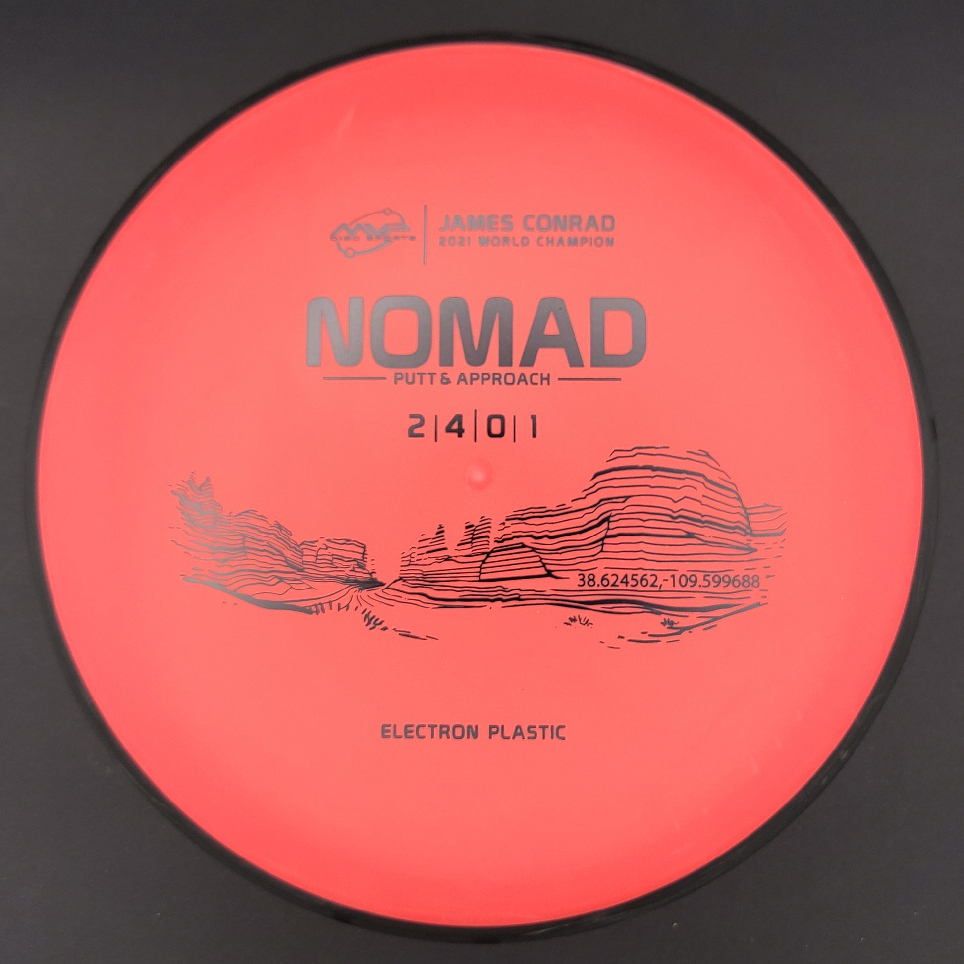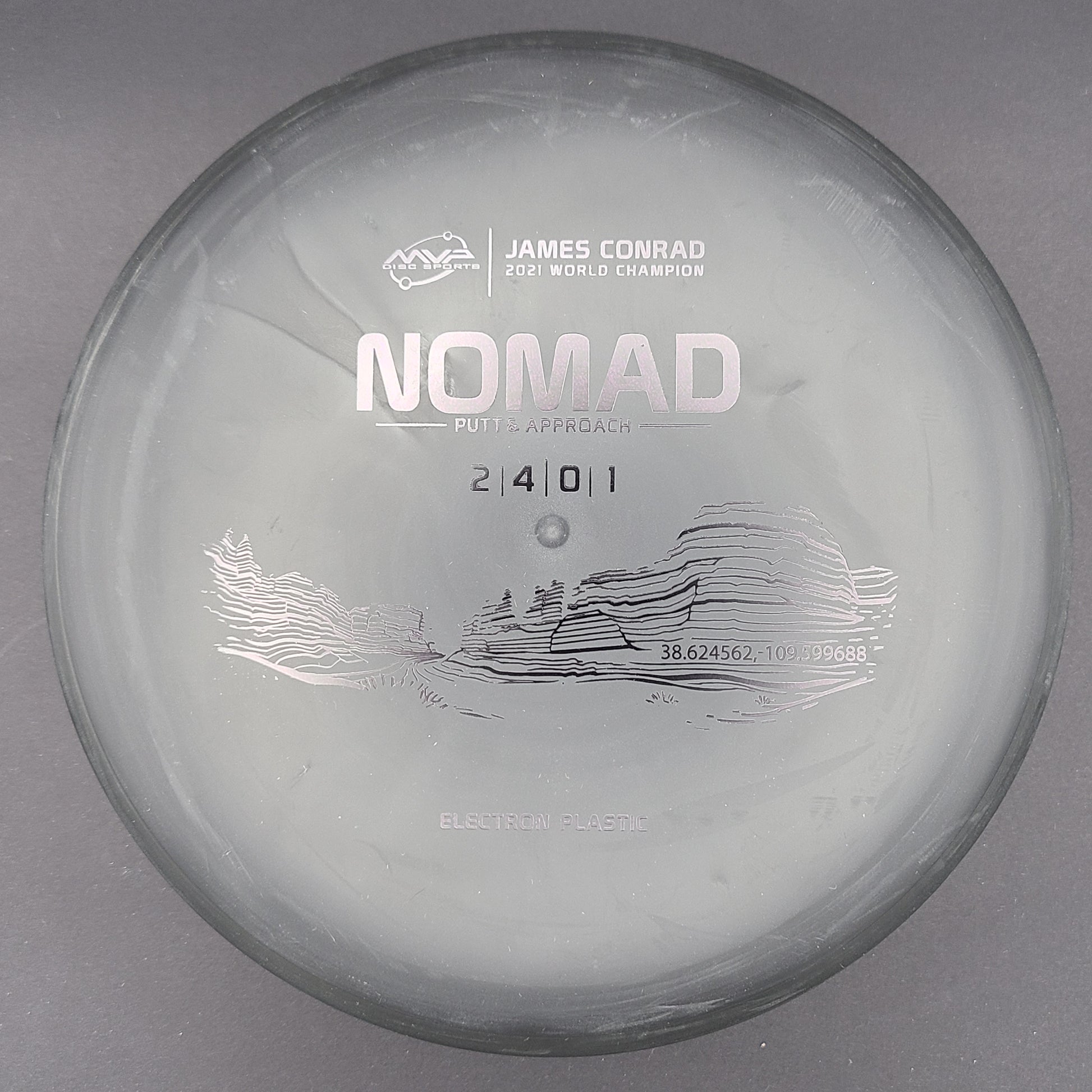 From the depth and shoulder height, all the way down to the size of the small bead — the Nomad is James Conrad’s vision of an ideal putter. Expect a neutral flight inside the Circle, with some fade kicking in at Circle 2 — making the Nomad great at holding anhyzer or hyzer angles when need be. Off the tee, the Nomad’s straight-stable flight will let throwers of all power levels experience confident, straight lines with just enough glide to stick under the basket — not blow past it.