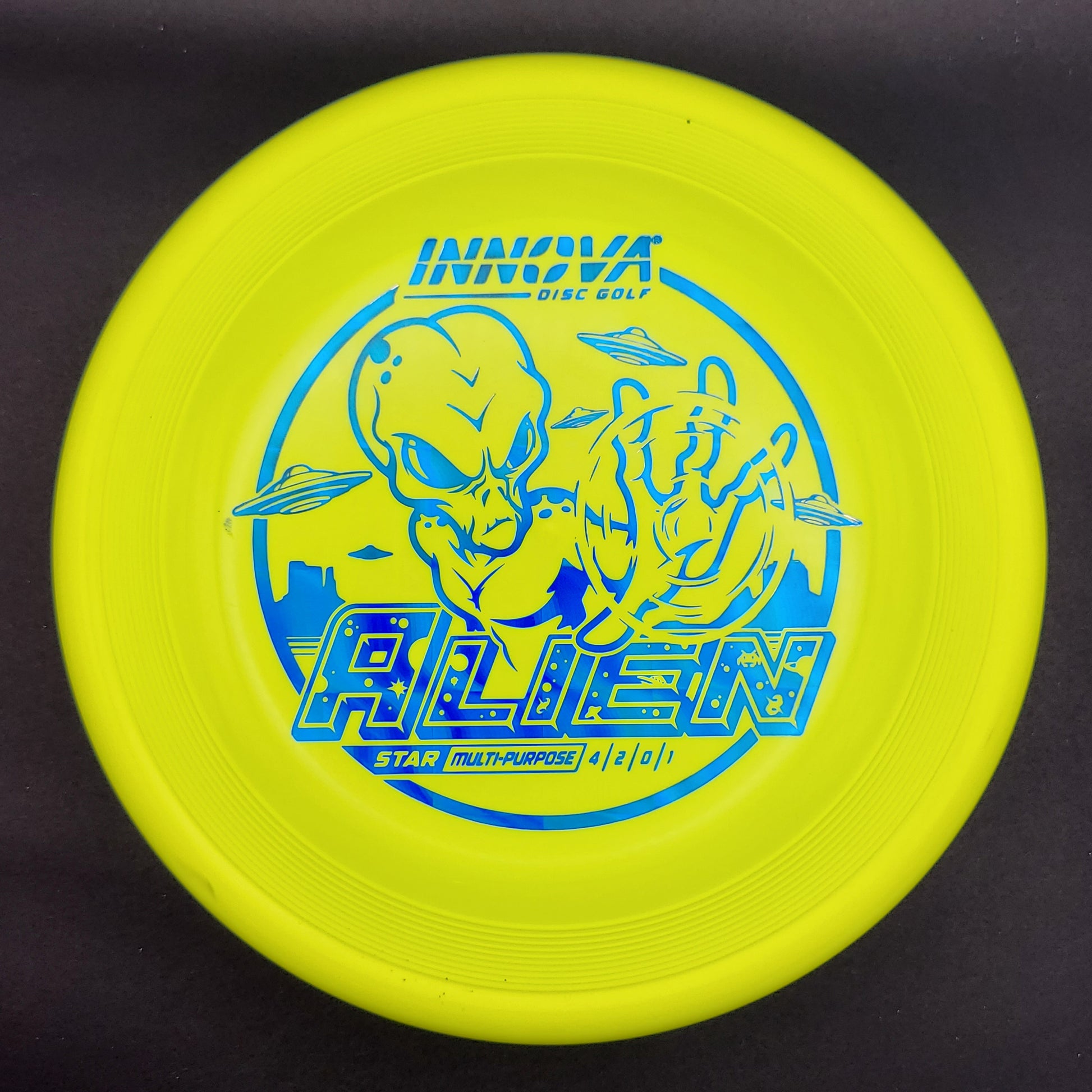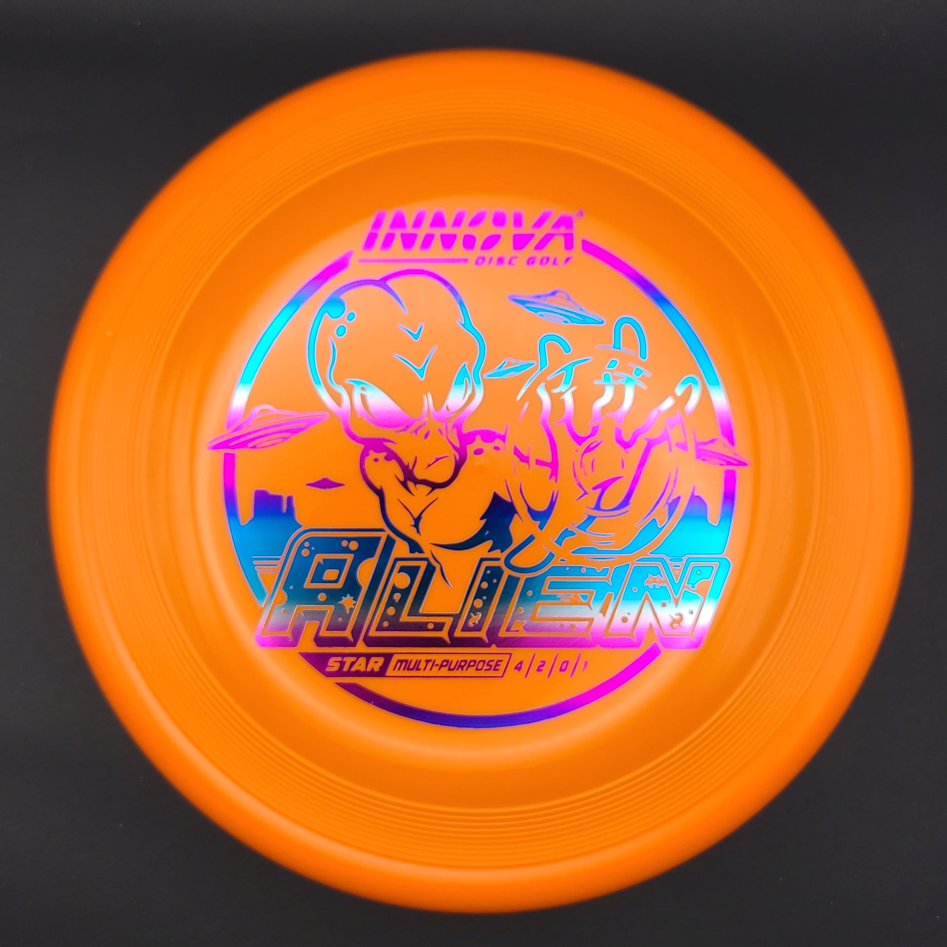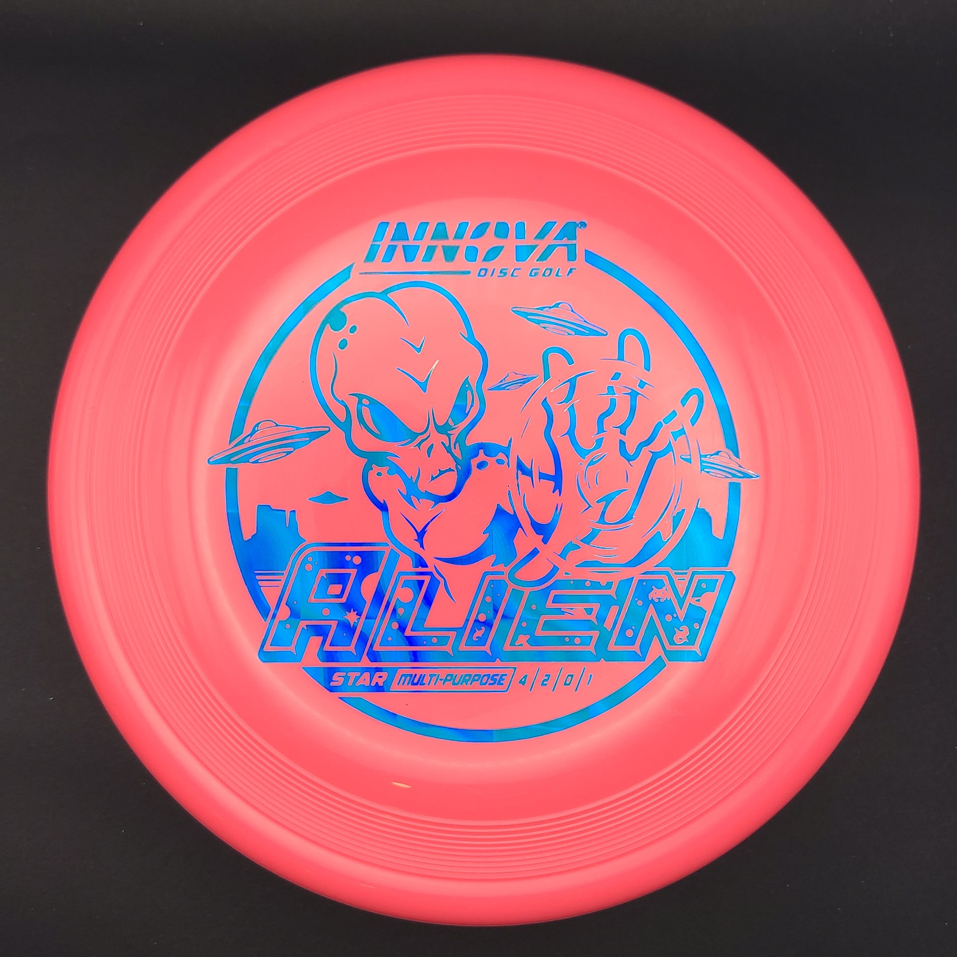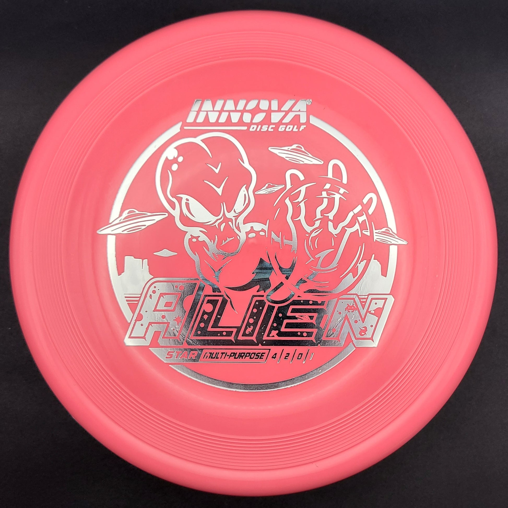 Unique in both look and feel, its top resembles a Sonic, its rim is like a mid-range. Its flight is surprisingly stable, maybe a tad overstable. The Alien thrives in a universe of spin putts, approach shots, and short-range drives.