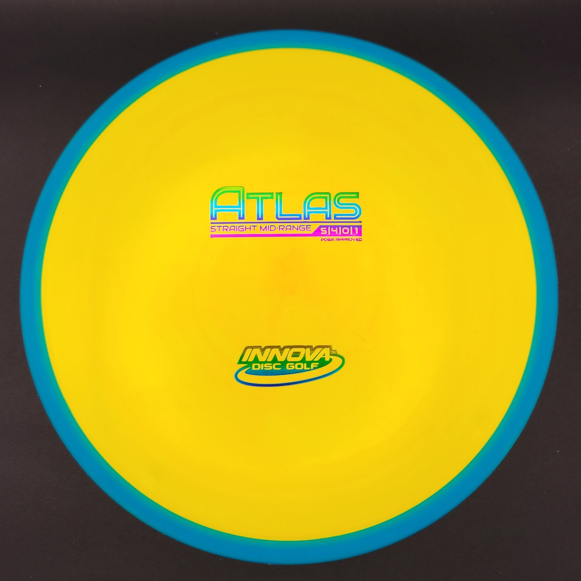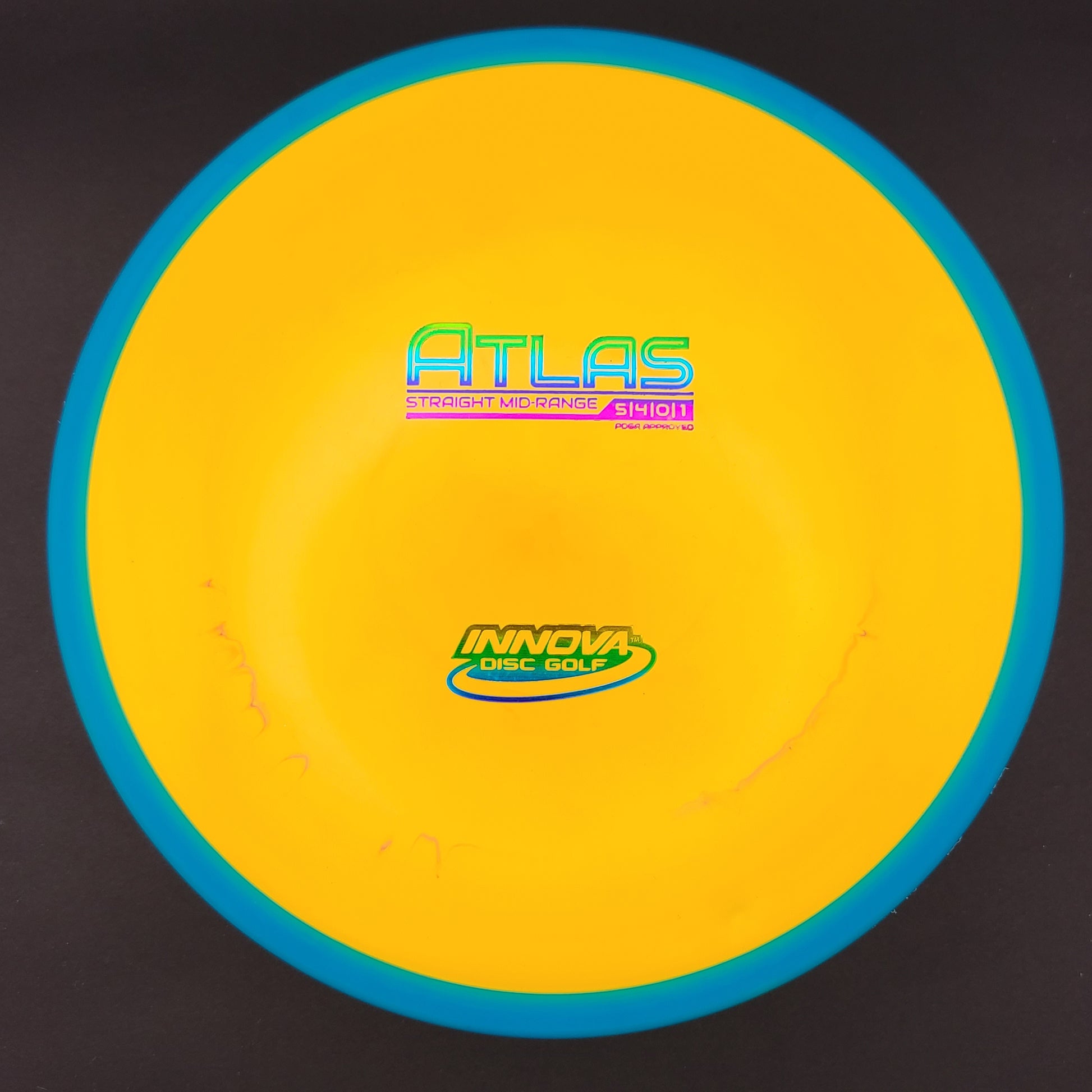L'Atlas est un surmoulage qui combine une plaque de vol ferme et discrète avec un rebord adhérent. Ce milieu de gamme vole droit avec un minimum de fondu, combinant précision et contrôle avec une poignée ergonomique. L'Atlas fonctionne bien pour les lanceurs de revers et de coup droit, pardonnant mieux les petites erreurs de lancer que tout autre milieu de gamme. L'Atlas comporte quatre « points cardinaux » situés sous le disque. Ces ports sont l'endroit où la jante est injectée sur la plaque de vol.