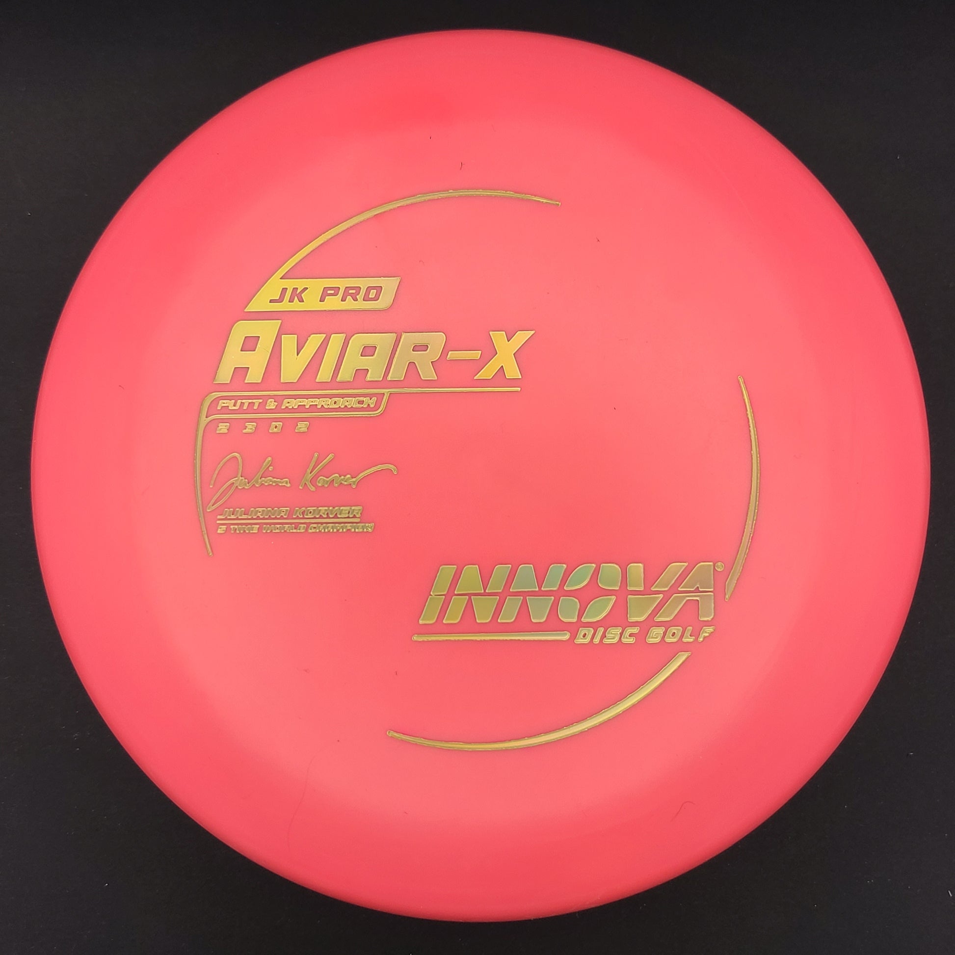 The JK (Juliana Korver) Aviar is made from the driver mold in a special blend of durable Pro-line Plastic that is more flexible and grippier than the other Aviar models. It has the same flight characteristics as the KC Aviar. Its softer plastic is better in colder climates and for those who have dry hands and require a tackier grip.
